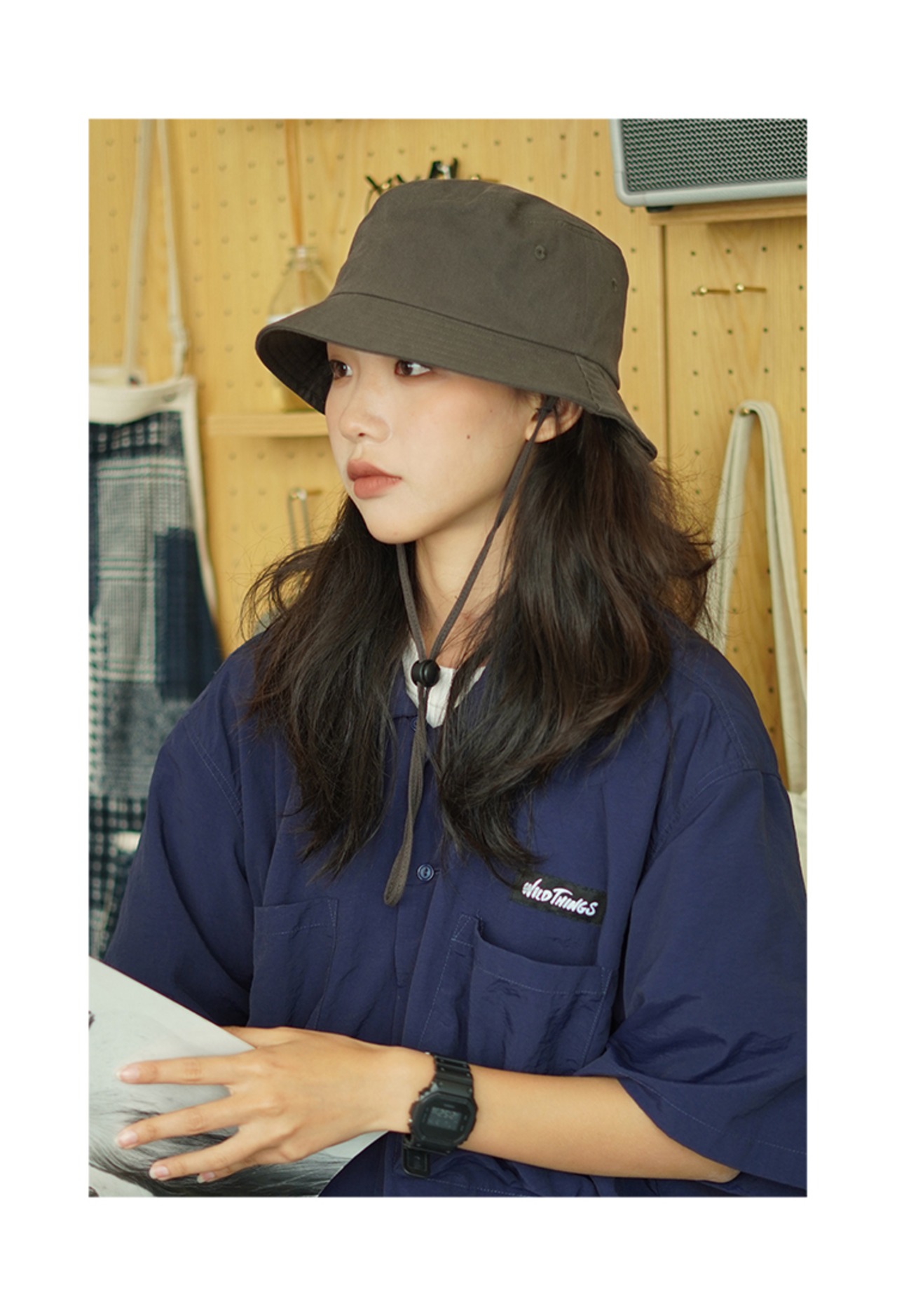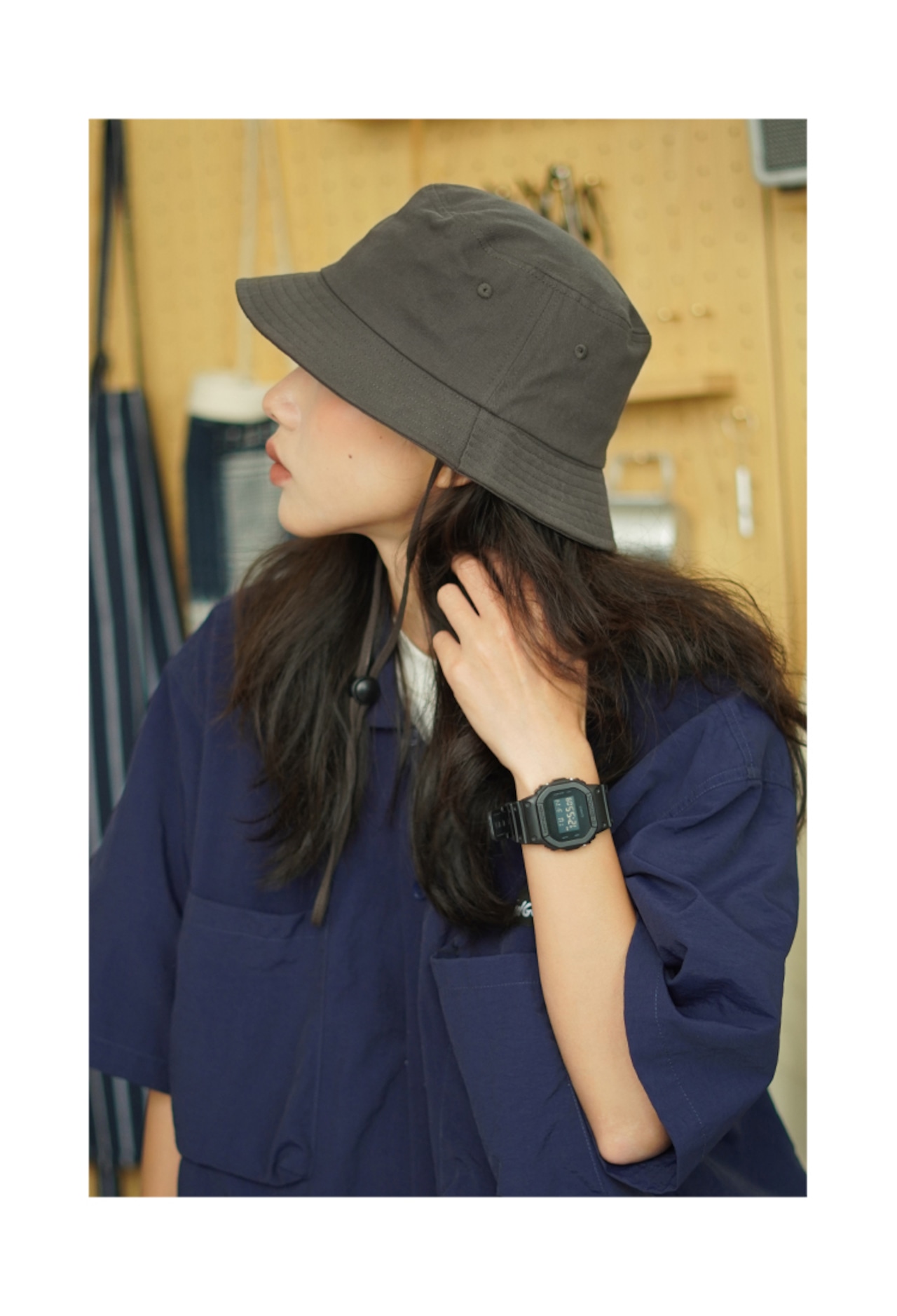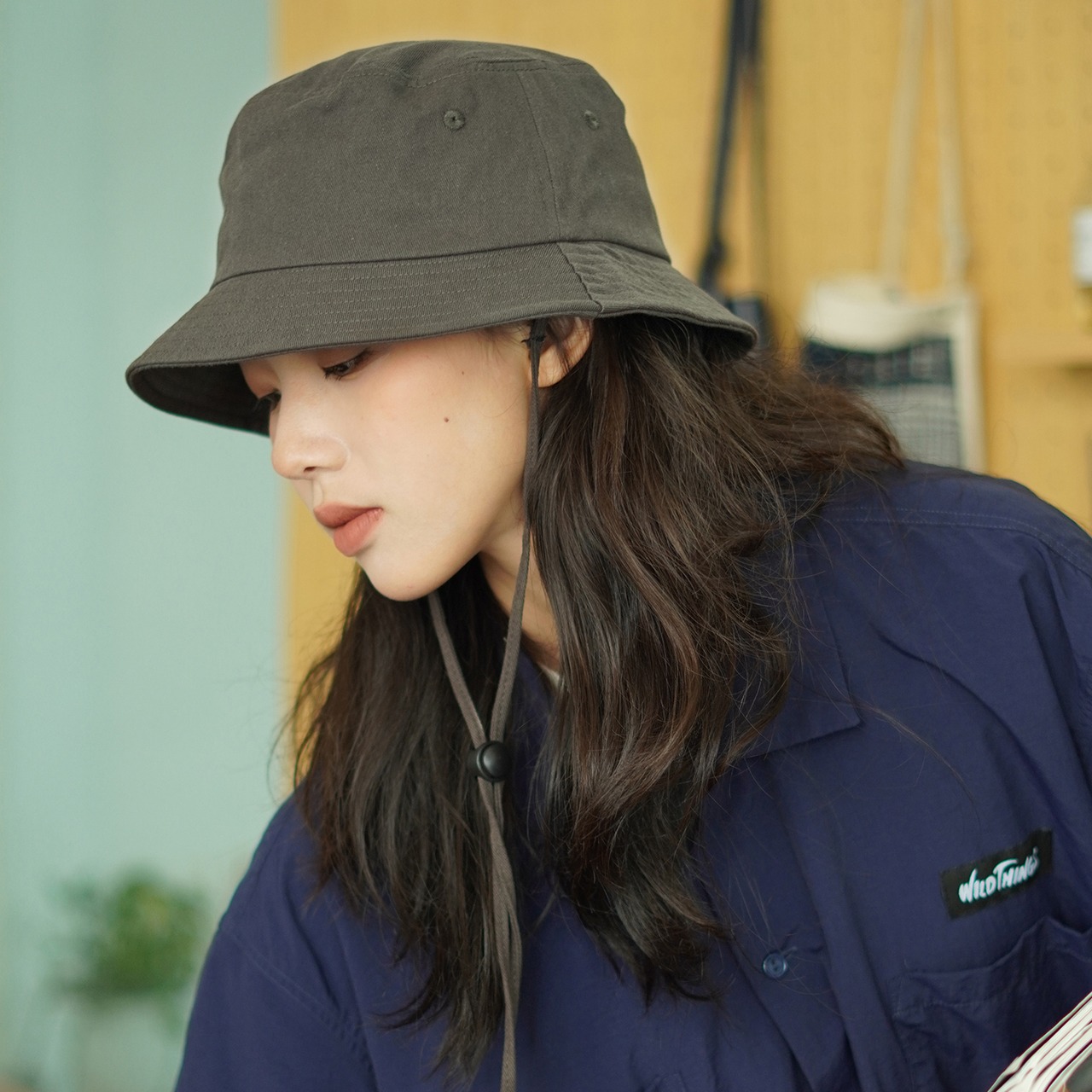 【THEHOBOO】ese巾着無地フィッシャーマンハットレディース大頭囲夏日焼け止めサンシェードフィッシングハットメンズ 帽子 サマー 夏物 ソリッドカラー hat39053905707