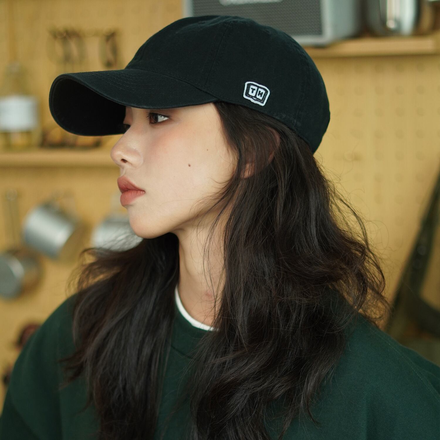 【THEHOBOO】eseアルファベットブラックピークキャップレディースサマーサンシェードベースボールキャップメンズソフトトップ無地帽子 夏物 ソリッドカラー hat4448377100